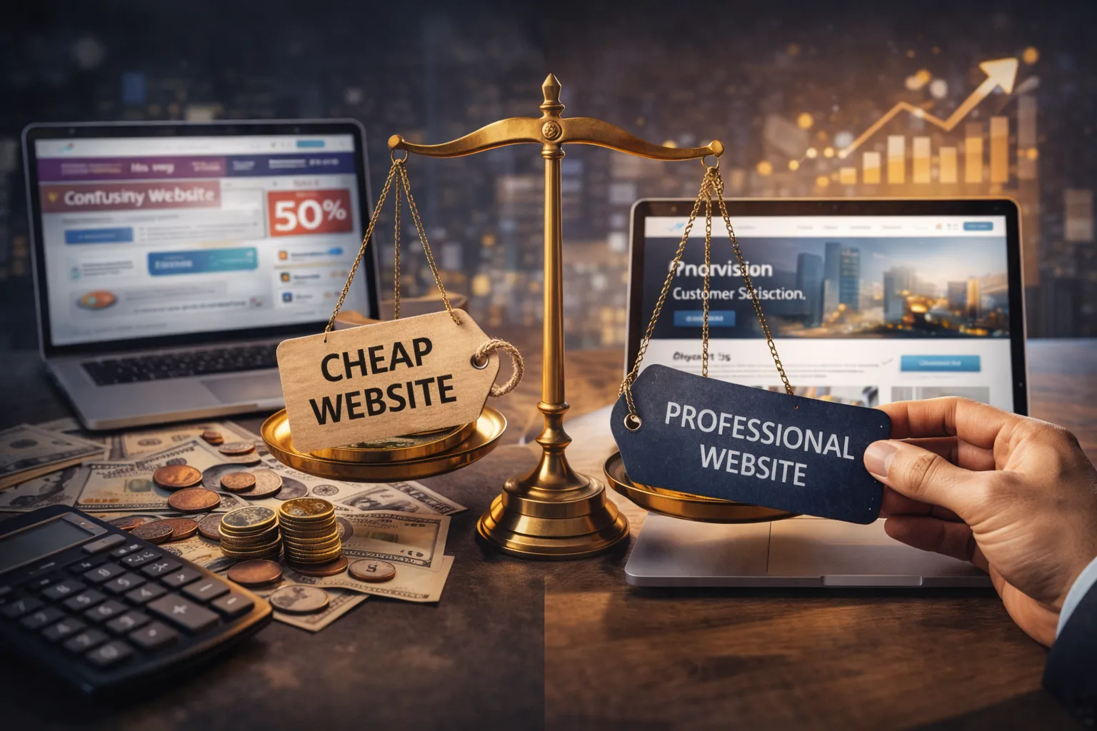 A cheap website is usually built fast, without strategy, using a generic template, minimal content, and no real optimization. The goal is quick delivery — not performance.